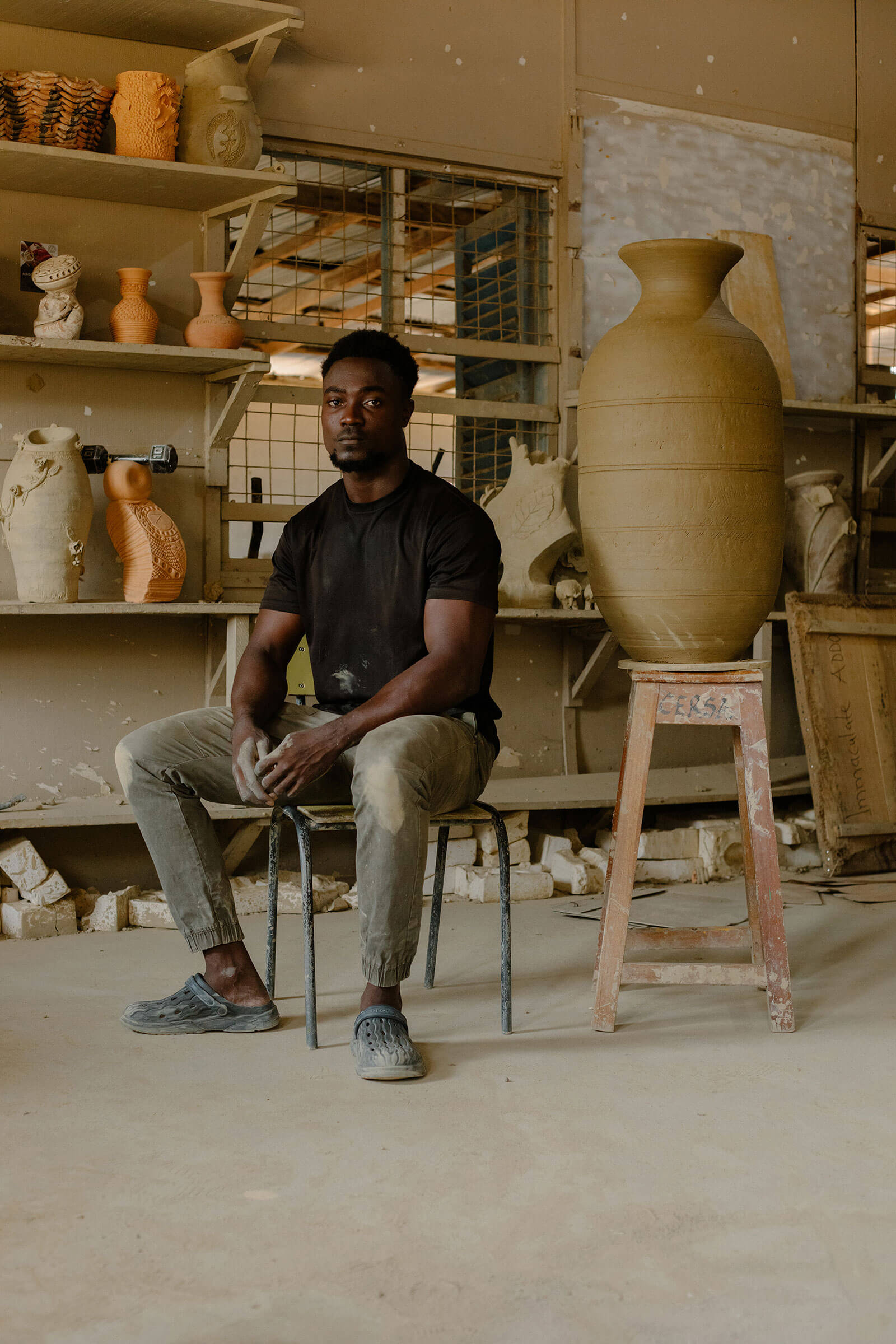 London collectible design gallery FUMI is making its debut at Collect with the totemic work of Ghanaian ceramic artist, Kobina Adusah. A finalist in the Loewe Foundation Craft Prize in 2025, Adusah’s hand-built and thrown vessels and sculptures, fired but not glazed, simultaneously raw and cooked, vulnerable and imposing, draw both on Akan history and mythology and on the long global history of pottery.